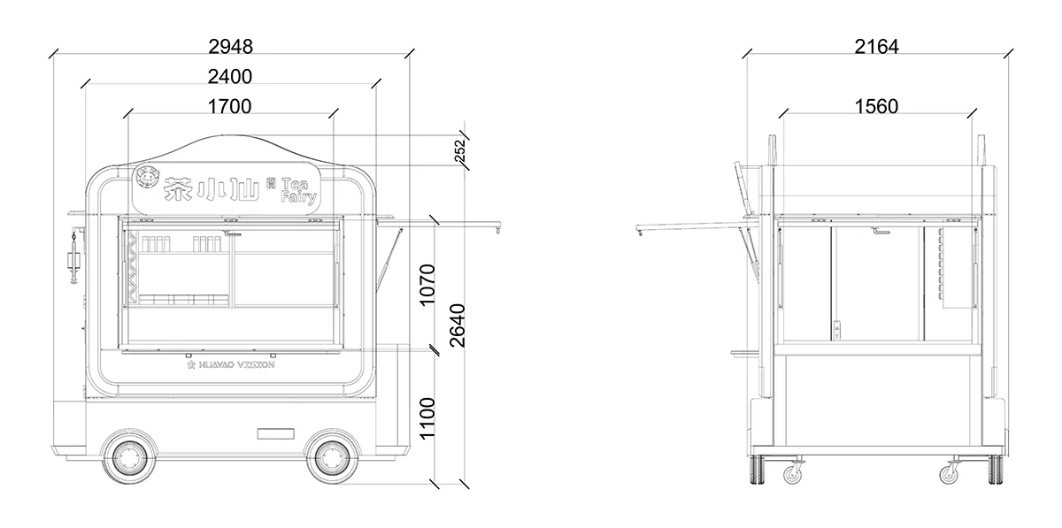 Le dimensioni dei prodotti sono principalmente di 4 m di lunghezza (adatte per scenari di business delle bevande), con una vetrina di vendita abbinata a un tavolo operatorio pieghevole, parasole e tettoia antipioggia e deflettori antipolvere che tengono conto della comodità di ordinare, mescolare e ritirare i pasti. Rispetto ai negozi di bevande fissi, consente di risparmiare notevolmente sull'affitto, sulla decorazione e sui costi di proprietà e può operare in modo flessibile in base ai cambiamenti del flusso di passeggeri, adattandosi a una varietà di scenari come il pendolarismo nelle ore di punta mattutine, il tè pomeridiano, i mercati notturni e le mostre. Aiuta a conquistare rapidamente il mercato dei consumatori ed è l'attrezzatura preferita per l'imprenditorialità su piccola scala, i marchi pop-up e i servizi di bevande scenari