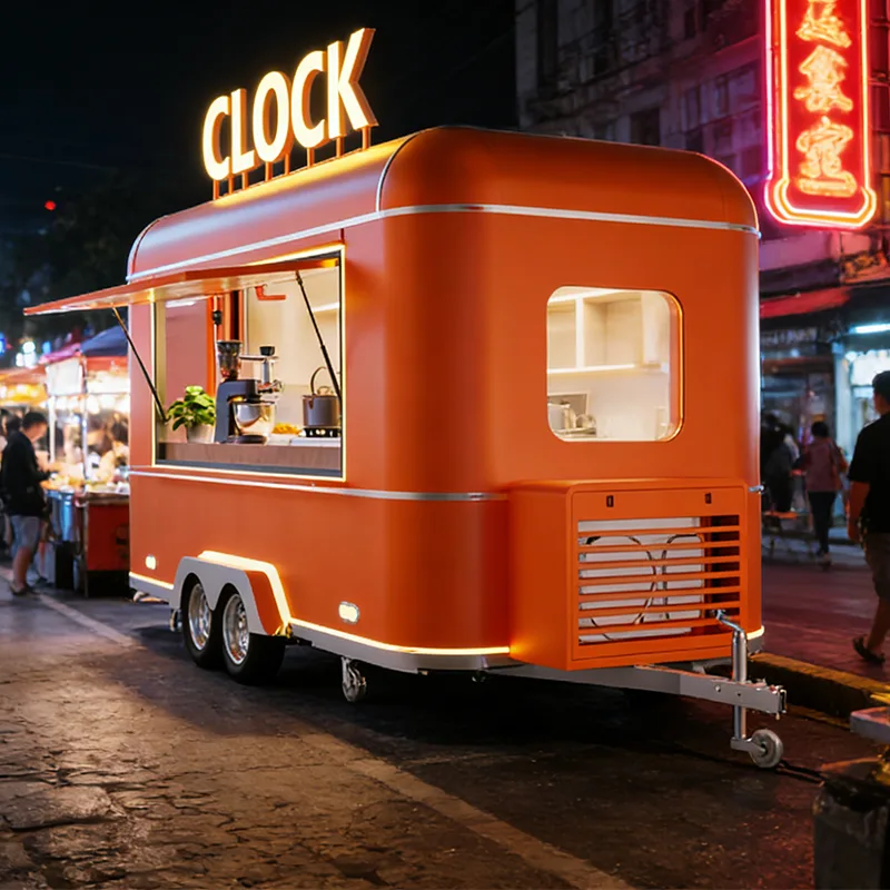 Il rimorchio in concessione utilizza un telaio con struttura in acciaio per carichi pesanti, dotato di meccanismo di traino rinforzato e sistema di sospensioni ad alta stabilità, che può essere facilmente trainato da camioncini e autocarri leggeri. Si adatta alle condizioni stradali come percorsi in aree panoramiche, dintorni di stadi e parchi espositivi. La distribuzione è efficiente e duratura. Il corpo principale utilizza isolamento per uso alimentare e pannelli compositi resistenti alla corrosione, trattati con prevenzione della ruggine su tutti i domini e impermeabilizzazione sigillata per resistere alle differenze di temperatura esterna e alle intemperie. L'aspetto supporta la personalizzazione del marchio a dimensione intera, può riprodurre accuratamente il sistema del marchio in franchising ed è abbinato a un LOGO luminoso incorporato, vernice personalizzata e parasole pieghevole per migliorare il riconoscimento del marchio e aiutare l'immagine del marchio in modo coerente. Gli interni sono tutti realizzati in acciaio inossidabile 304, con controsoffitti, pareti e pavimenti antiscivolo e resistenti all'olio, facili da pulire e soddisfano pienamente i requisiti di conformità delle operazioni di franchising.